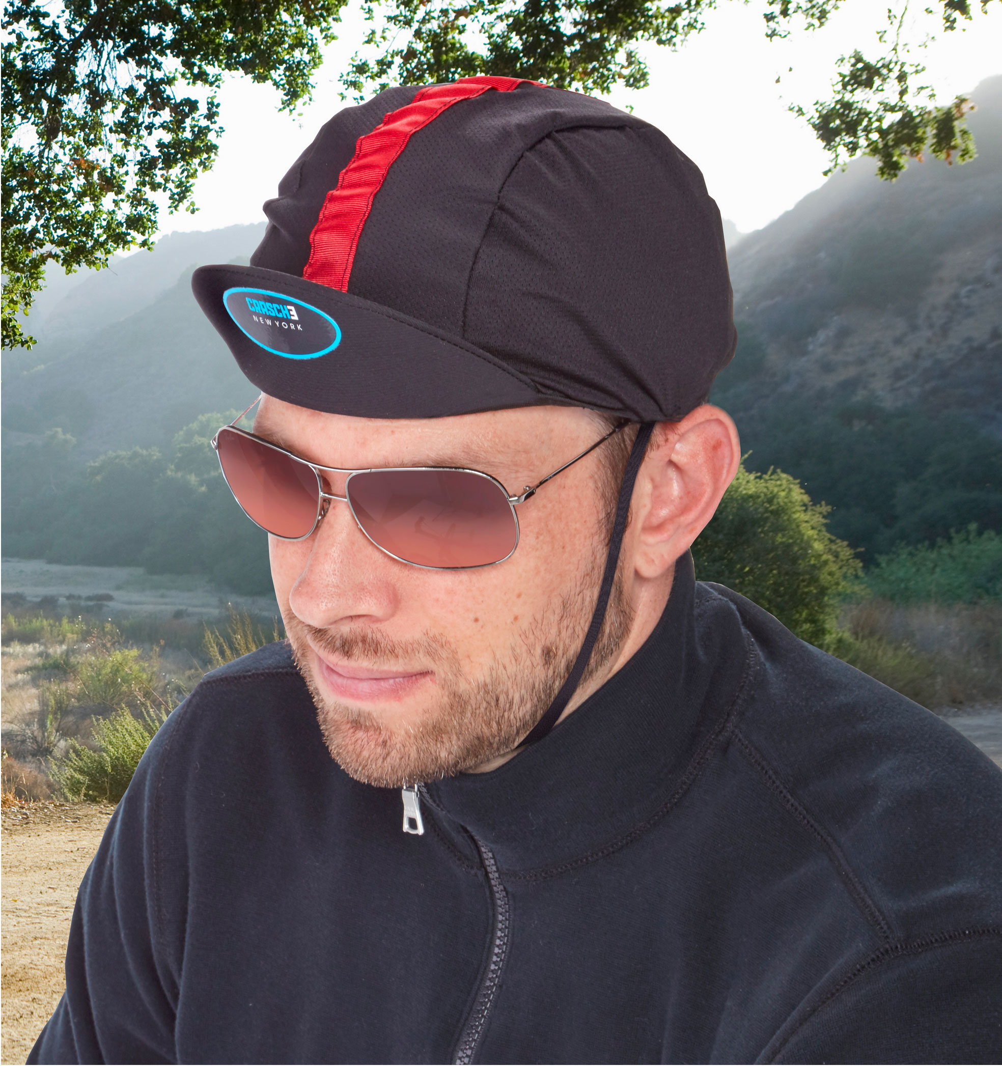 The Crasche “X 38” cycling cap is similar in style to an Italian cycling cap, only with a built in layer of protection and an adjustable chin strap. The “X 38” is not meant to replace a bicycle helmet, as it does not offer the protection of a helmet. It is only designed for people who do not wear a helmet.